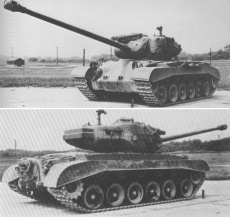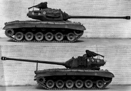Предсерийный T26E4 — этот танк выглядит почти как полноценный серийный образец, новый гидропневматический балансир орудия убран внутрь башни, а башенный противовес стал гораздо менее громоздким