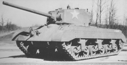 Серийный T23 на Абердинском испытательном полигоне, хорошо видна башня, которую с лета 1943 года начали устанавливать и на «Шерманы»