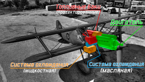 Практически любое попадание по корпусу истребителя из-за слишком плотного расположения двигателя, системы охлаждения и топливных баков, приводит к утечкам воды и масла, что впоследствии приводит к перегреву двигателя и полному его отключению. При возникновении таких ситуаций следует вернутся на аэродром и отремонтироваться. Но утечки топлива возникают довольно редко и не настолько страшны благодаря проектированным бакам, благодаря им же возгорания баков случаются редко.