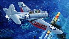 - SBD SBD-3 «Даунтлесс» атакует японский авианосец у Мидуэя, рисунок.jpg NAVY_Labs